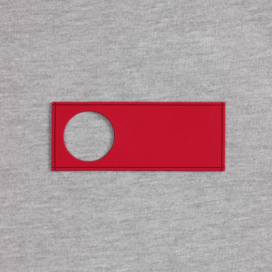 - сделать нанесение на изделии, поверх которого нашить лейбл так, чтобы вырубка стала частью целостного уникального дизайна.