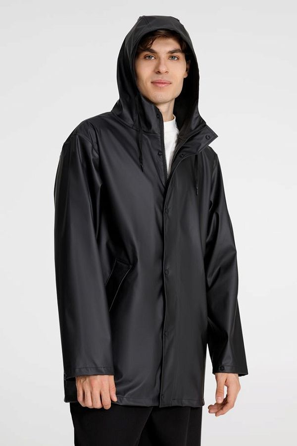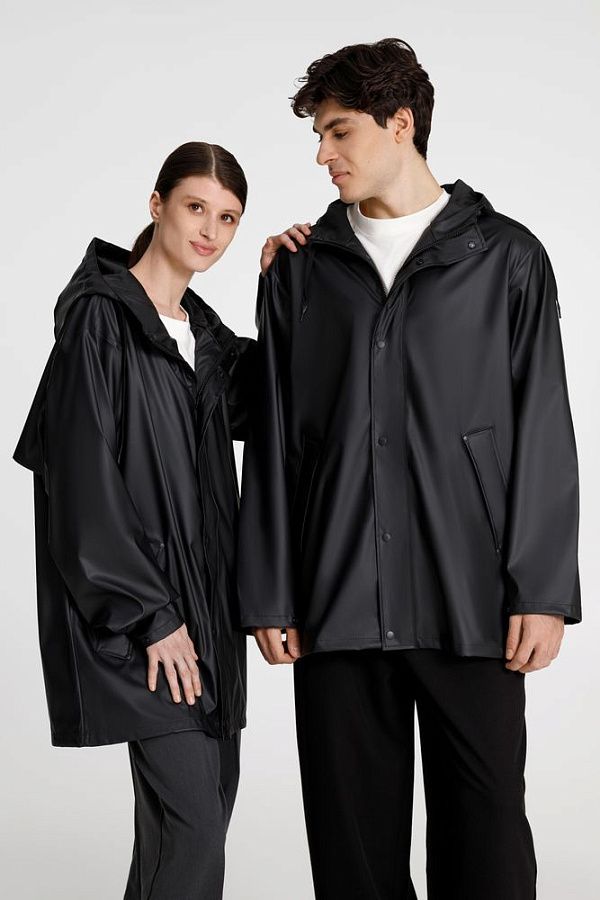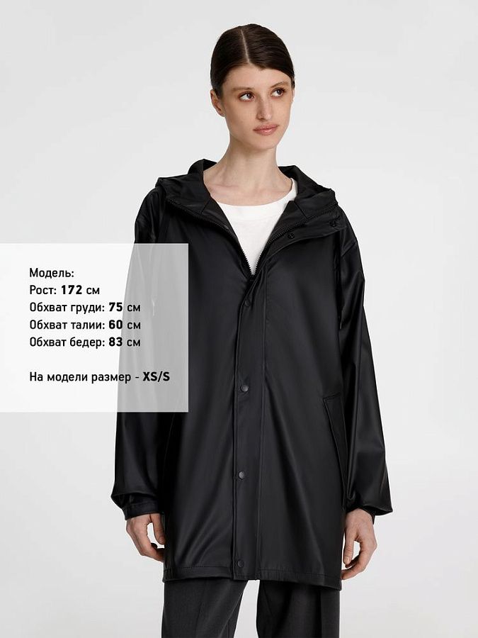 Парка с капюшоном из полиэстера с полиуретановым непромокаемым покрытием.