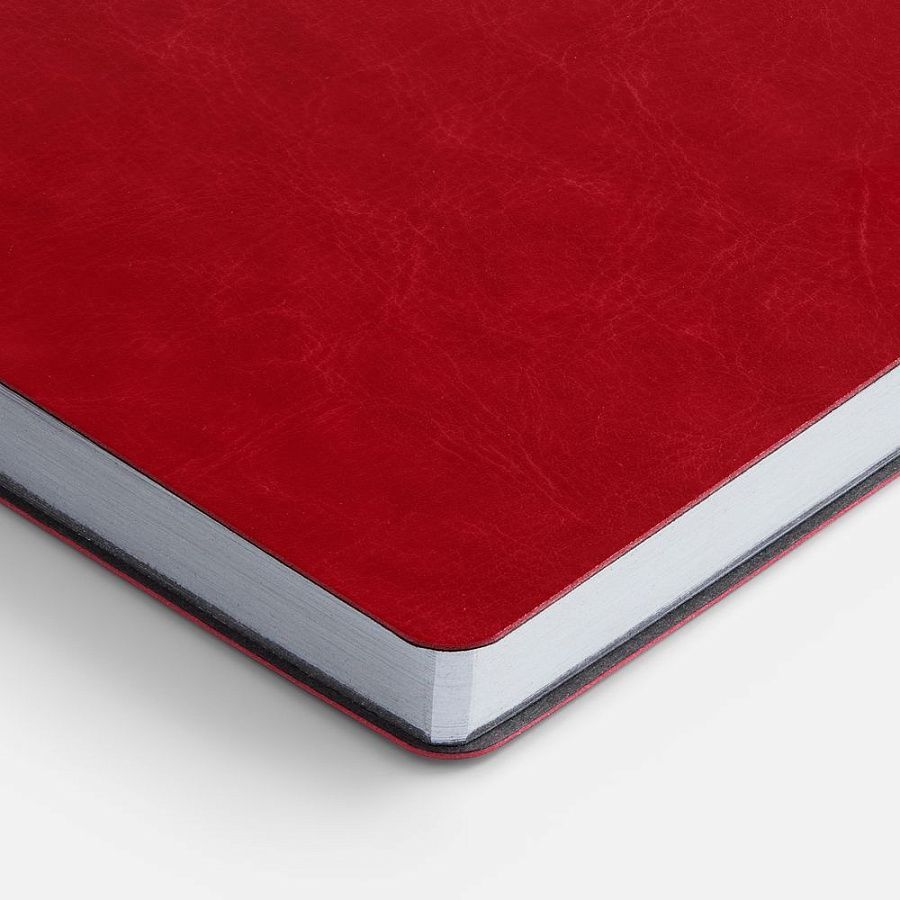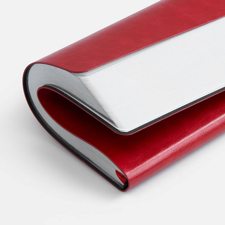 Ежедневник с гибкой обложкой, выполнен из материала Nebraska, красный PP, дополнен ляссе красного цвета.