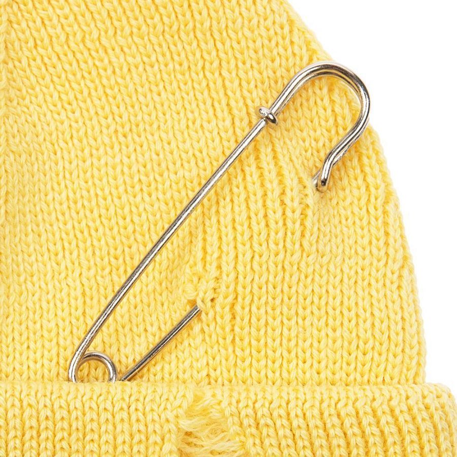 Однослойная шапка бини с рваным отворотом и металлическими аксессуарами для дерзких образов в любом возрасте. Яркий и запоминающийся акцент в стиле гранж.