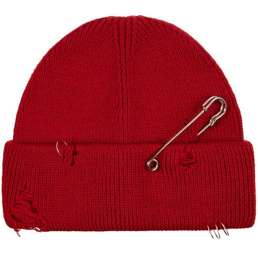 Однослойная шапка бини с рваным отворотом и металлическими аксессуарами для дерзких образов в любом возрасте. Яркий и запоминающийся акцент в стиле гранж.