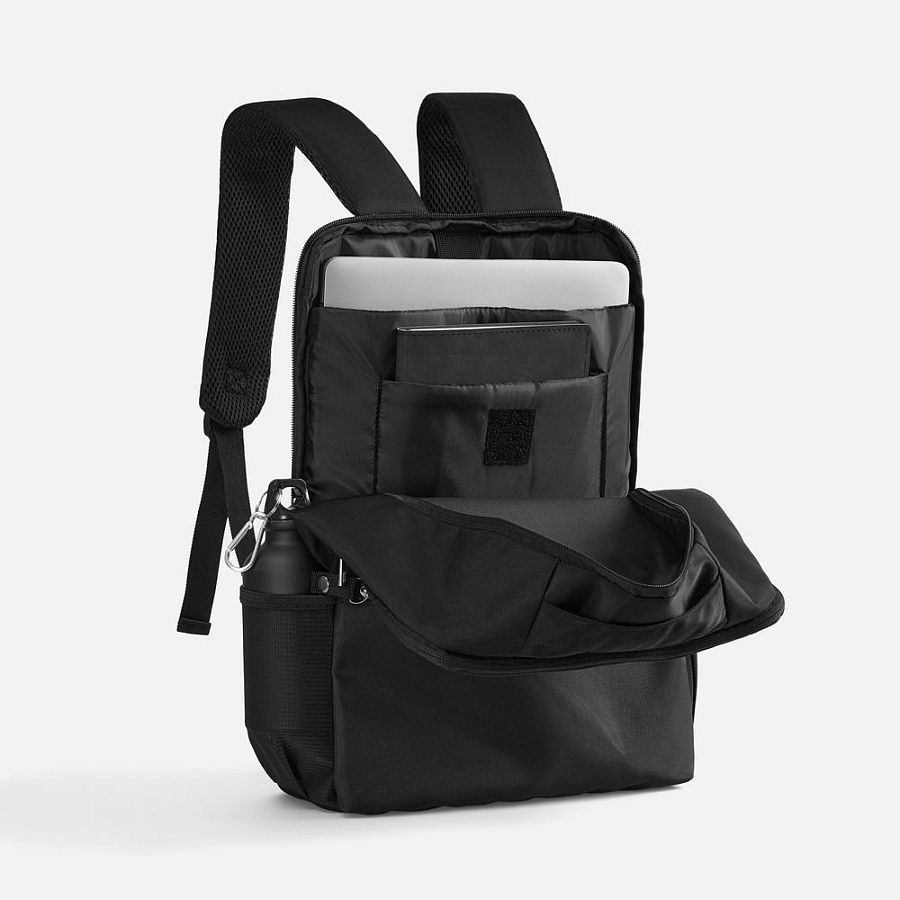 Особенность рюкзака — акцент на безопасность. Продуманная конструкция со смещенной к спинке молнией основного отделения усложняет несанкционированный доступ к содержимому, а пуллер на молнии наружного кармана можно пристегнуть к боковой части рюкзака, чтобы уменьшить вероятность случайного открытия.