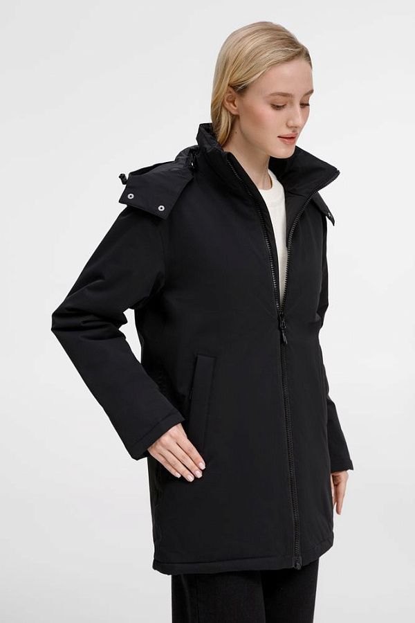 - Отстегивающийся капюшон с утяжкой и кнопками для плотного прилегания и защиты горла