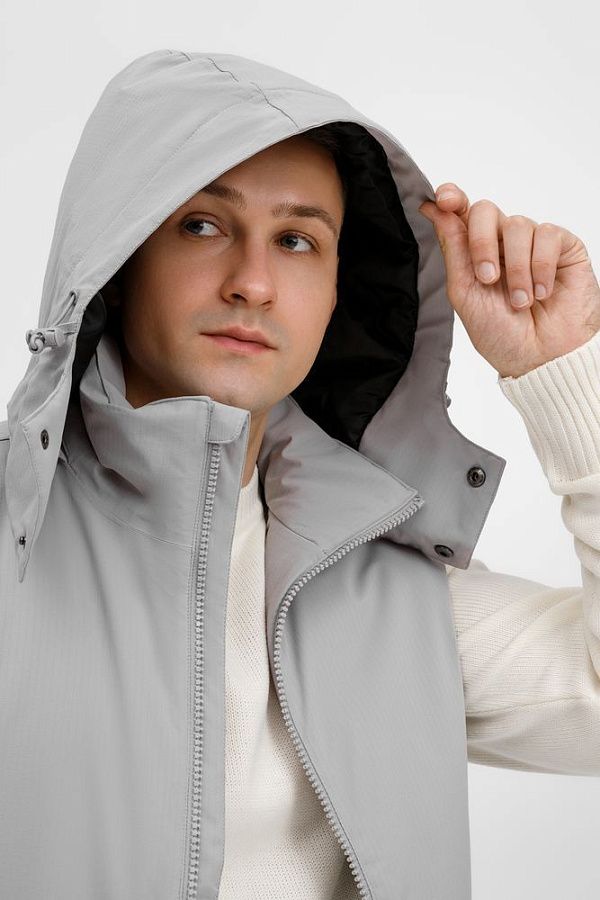 - Отстегивающийся капюшон с утяжкой и кнопками для плотного прилегания и защиты горла