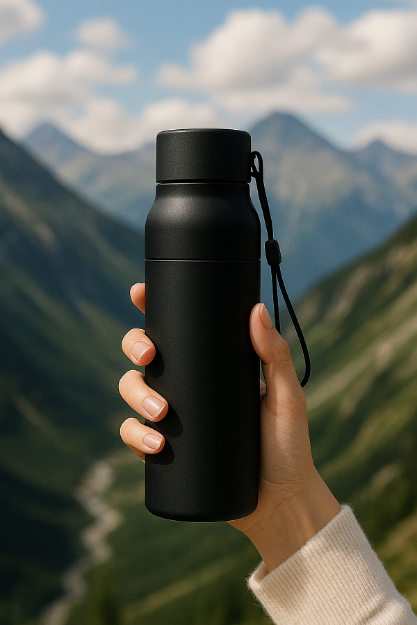 Термобутылка Button Black -идеальный выбор для путешествий и занятий спортом.