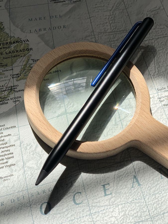 Инновационный, совершенно необычный карандаш с цельным алюминиевым матовым корпусом черного цвета, ярким фиолетовым клипом и пишущим наконечником из материала GrafeeX. GrafeeX - это запатентованный инновационный материал, полученный в результате спекания мелких частиц графита при высоких температурах. То есть он пишет, как обычный графитовый карандаш, но из-за высокой плотности материала крайне экономно расходуется, и его хватает очень надолго. Карандаш вкладывается в элегантный темно-серый чехол с контрастной прострочкой в цвет клипа, сшитый вручную из рециклированной кожи. GrafeeX станет идеальным помощником в повседневной жизни: для заметок, для набросков или просто для записи идей на бумаге.
