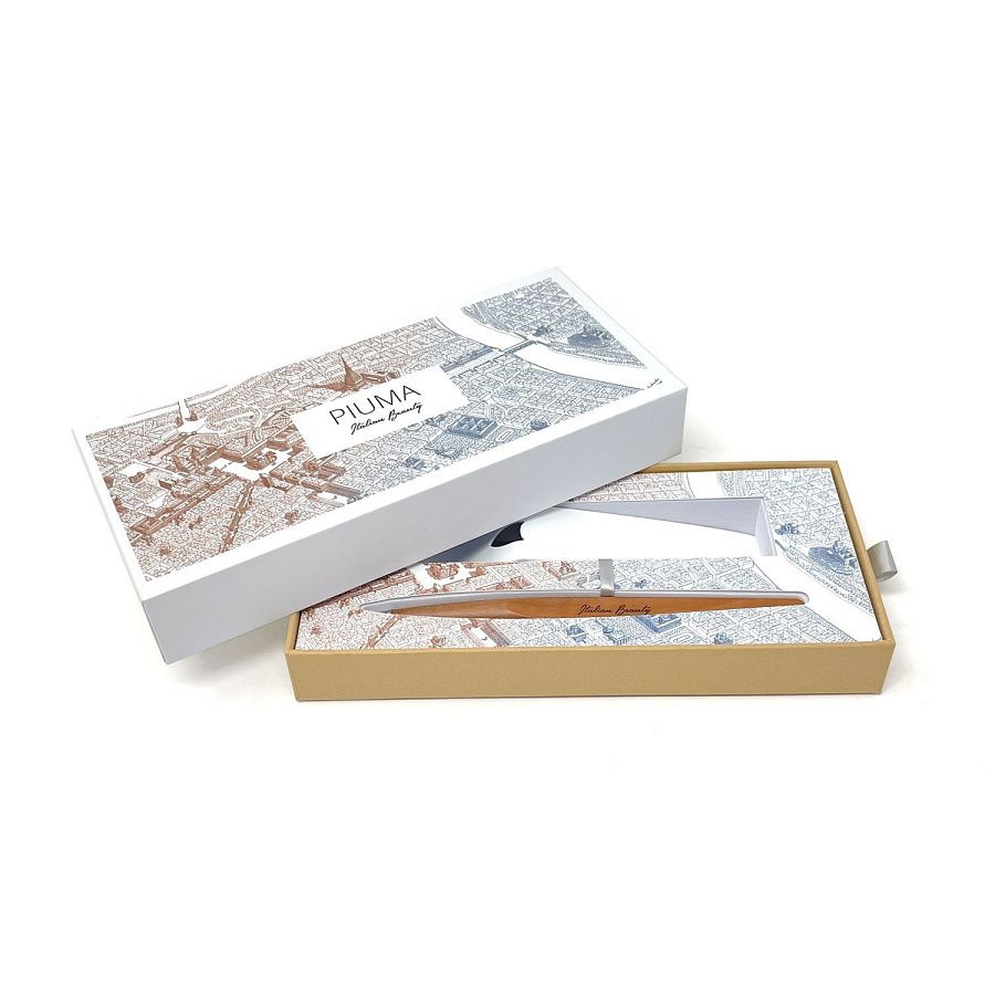 Вечная ручка Pininfarina Piuma Турин из лимитированной коллекции дизайнеров Pininfarina в сотрудничестве с Francesco Corni Foundation, посвященной красоте Италии и представленной 8 городами. Франческо Корни - выдающийся дизайнер из Модены, посвятивший свою жизнь популяризации истории и архитектуры. Используя трехмерное перспективное видение, он изучает наиболее значимые здания каждого города, выбирает наилучшую точку обзора, чтобы подчеркнуть их особенности, и прорисовывает детали в древней технике калиграфии. Дополняет видение мастера умелое использование цветов, по одному для каждого города. Для Турина дизайнер выбрал центральной точкой площадь Piazza Castello и сапфировый цвет, в результате подарочная коробка c ручкой Pininfarina PIUMA становится произведением искусства. PIUMA - ручка динамической формы в виде гусиного пера. Дизайнеры вдохновлялись Кодексом о полете птиц мастера Леонардо да Винчи, целью которого было понять тайну полета и который хранится сейчас в Королевской библиотеке Турина. Piuma находится в постоянном равновесии со своим центром тяжести благодаря белому стальному пьедесталу. Вечная ручка имеет необычный пишущий узел в виде наконечника Ethergraf®, изготовленного из сплава металлов по запатентованной технологии. Он не содержит свинец и алюминий, производится вручную итальянскими мастерами и практически не расходуется за десятилетия использования. При соприкосновении с поверхностью бумаги, происходит химическая реакция и наконечник оставляет серебристый след, который напоминает цвет графитового карандаша, но обладает большей стойкостью. Идеально пишет на каменной бумаге. На ручке стильный логотип Italian Beauty, она полностью сделана из дерева груши. Набор упакован в белую подарочную коробку.
