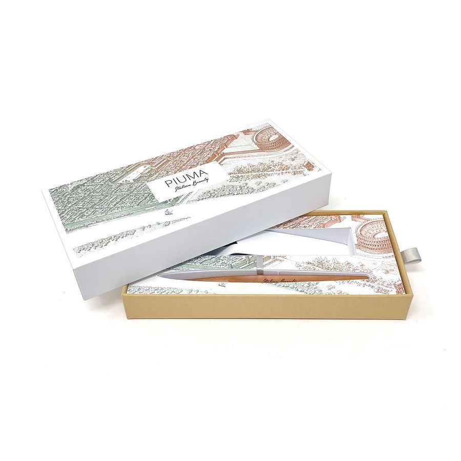 Вечная ручка Pininfarina Piuma Верона из лимитированной коллекции дизайнеров Pininfarina в сотрудничестве с Francesco Corni Foundation, посвященной красоте Италии и представленной 8 городами. Франческо Корни - выдающийся дизайнер из Модены, посвятивший свою жизнь популяризации истории и архитектуры. Используя трехмерное перспективное видение, он изучает наиболее значимые здания каждого города, выбирает наилучшую точку обзора, чтобы подчеркнуть их особенности, и прорисовывает детали в древней технике калиграфии. Дополняет видение мастера умелое использование цветов, по одному для каждого города. Для Вероны дизайнер выбрал центральной точкой романский амфитеатр Arena di Verona и зеленый цвет, в результате подарочная коробка c ручкой Pininfarina PIUMA становится произведением искусства. PIUMA - ручка динамической формы в виде гусиного пера. Дизайнеры вдохновлялись Кодексом о полете птиц мастера Леонардо да Винчи, целью которого было понять тайну полета и который хранится сейчас в Королевской библиотеке Турина. Piuma находится в постоянном равновесии со своим центром тяжести благодаря белому стальному пьедесталу. Вечная ручка имеет необычный пишущий узел в виде наконечника Ethergraf®, изготовленного из сплава металлов по запатентованной технологии. Он не содержит свинец и алюминий, производится вручную итальянскими мастерами и практически не расходуется за десятилетия использования. При соприкосновении с поверхностью бумаги, происходит химическая реакция и наконечник оставляет серебристый след, который напоминает цвет графитового карандаша, но обладает большей стойкостью. Идеально пишет на каменной бумаге. На ручке стильный логотип Italian Beauty, она полностью сделана из дерева груши. Набор упакован в белую подарочную коробку.