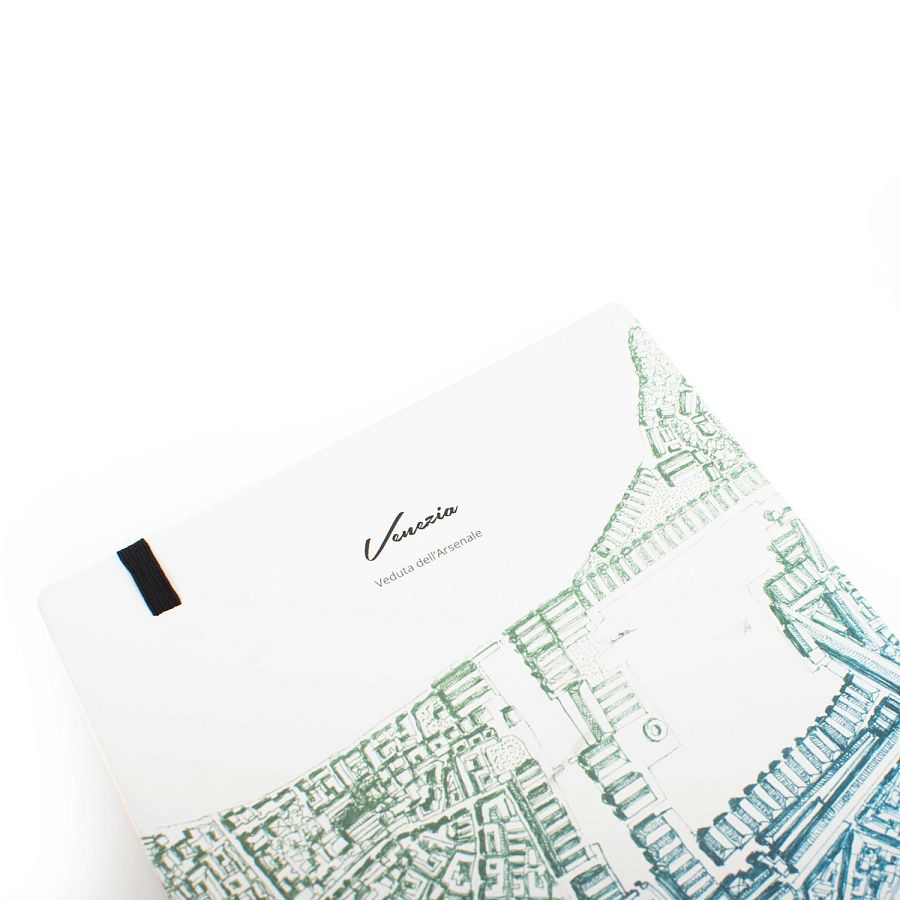 Тетрадь с листами из каменной бумаги Венеция из специальной коллекции Italian Beauty дизайнеров Pininfarina в сотрудничестве с Francesco Corni Foundation, посвященной красоте Италии. Франческо Корни - выдающийся дизайнер из Модены, посвятивший свою жизнь популяризации истории и архитектуры. Используя трехмерное перспективное видение, он изучает наиболее значимые здания каждого города, выбирает наилучшую точку обзора, чтобы подчеркнуть их особенности, и прорисовывает детали в древней технике калиграфии. Для Венеции дизайнер выбрал центром композиции вид сверху на Arsenale di Venezia и сине-зеленый морской цвет. Белая мягкая обложка фиксируется черной резинкой. Тетрадь размером А5 (14х21 см) содержит 64 листа в линейку. Листы сделаны из каменной бумаги, экологической альтернативы обычной целлюлозной бумаге, которая не требует вырубки деревьев, использования воды и агрессивных химических веществ, тем самым защищая окружающую среду. Она состоит из 80% камня (карбоната кальция) и на 20% из связующего его нетоксичного полиэтилена высокой плотности (HDPE). Это бумага нового поколения с уникальными характеристиками. Каменная бумага на 100% водоотталкивающая, ее можно мыть. Жидкости, включая масло, не изменяют ее структуру, поскольку она не содержит древесных волокон, которые поглощают жидкости, в следствие чего традиционная бумага покрывается пятнами, деформируется и разрушается. Каменная бумага устойчива к разрыву, что также способствует ее долговечности. Она имеет приятный бархатистый эффект и не отражает свет. Плотность бумаги 140 гр/м2. Ляссе черного цвета. Сделана в Италии.