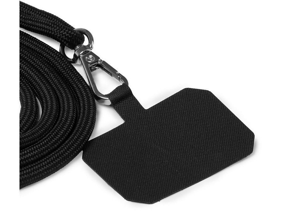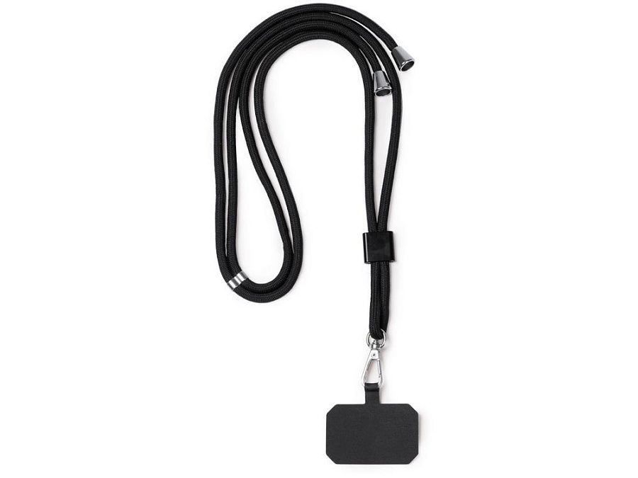 Держатель для мобильного телефона на шнурке из переработанного полиэстера RPET. Регулируемый ремешок, в комплект входит карабин.