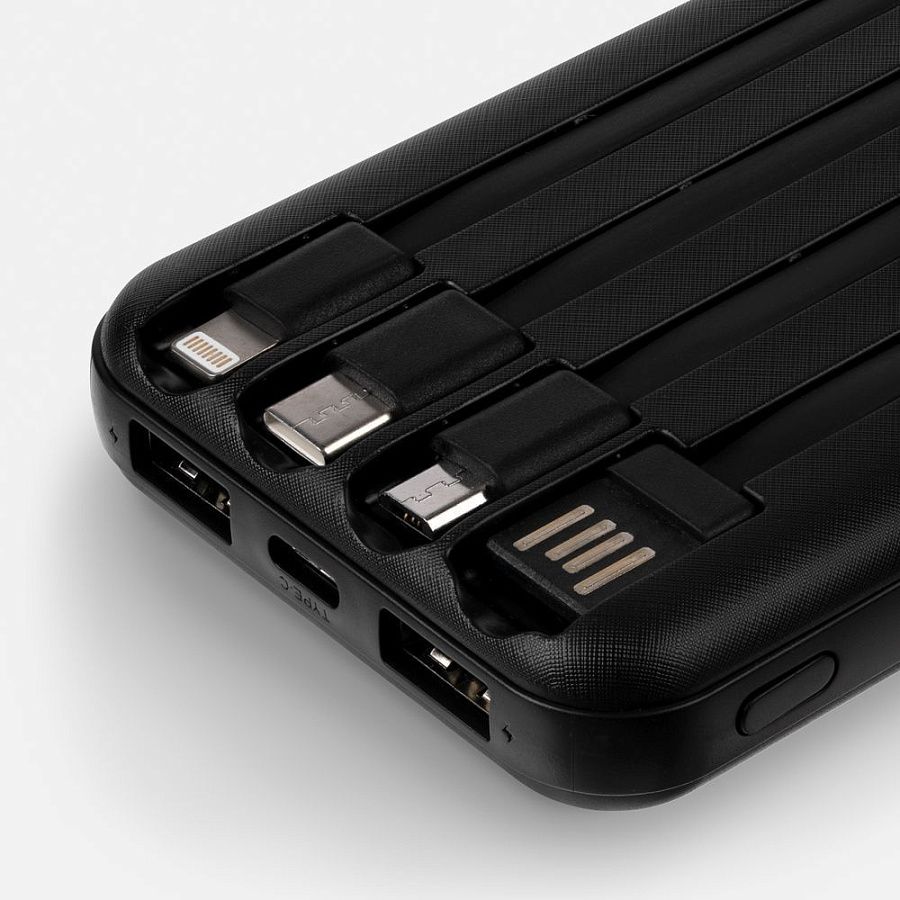 Интересная особенность аккумуляторов Omni — совершенно автономная конструкция: встроенные кабели позволяют заряжать как самые разные электронные устройства, так и сам аккумулятор. Если же смартфон поддерживает беспроводной заряд, то кабель вообще не нужен. Наглядный индикатор заряда в процентах.