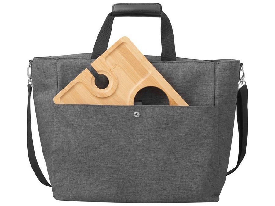 Большую вместительную сумку-холодильник удобно использоваться для транспортировки охлаждённых или подогретых продуктов и бутылок с разнообразными напитками. Внутри по бокам сумки расположены 2 изотермических кармана для высоких бутылок. Основное отделение на молнии. 2 ручки с фиксатором на липучке для удобства носить в руке. Большой наружный карман на кнопке. Съемная лямка на плечо регулируется по длине. Выгодный бонус - штопор с бамбуковой ручкой в комплекте.