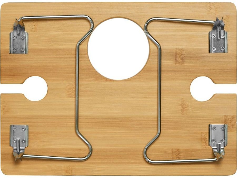 - Надежная фиксация напитков: Два углубления для бокалов и центральное отверстие для бутылки – забудьте о пролитых напитках!