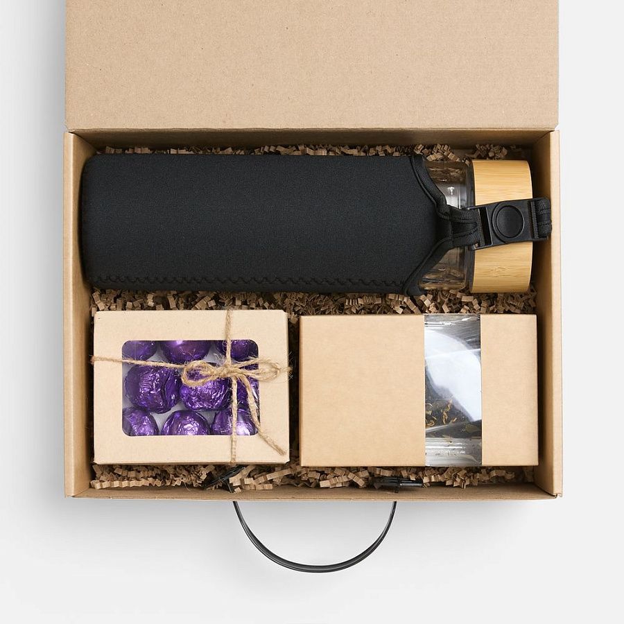 Грильяж в наборе порадует богатством вкуса, а чай подарит силы и энергию на целый день. Термобутылка из боросиликатного стекла подходит для традиционного и холодного заваривания, что особенно ценно для всех чайных гурманов: ее удобно брать с собой, наслаждаясь любимым напитком, когда захочется.