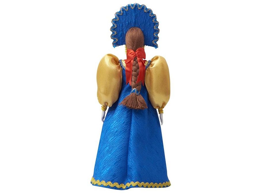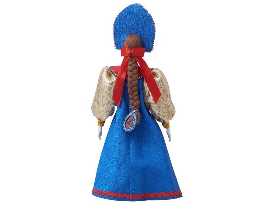- Фарфоровая кукла в народном костюме ручной работы: алый сарафан с пышными рукавами и расшитый кокошник создают образ русской красавицы в праздничном наряде.