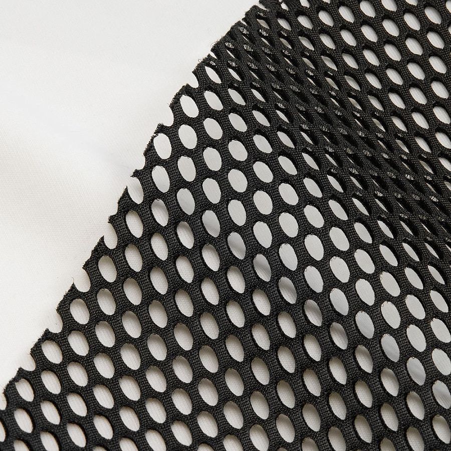 Крупная тканевая сетка Rete — это вызов стандартам. Она сразу заявляет о себе — просвечивающая и смелая. Такой материал невозможно не заметить: он придает изделию объем, брутальность и футуристичную эстетику.