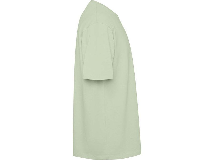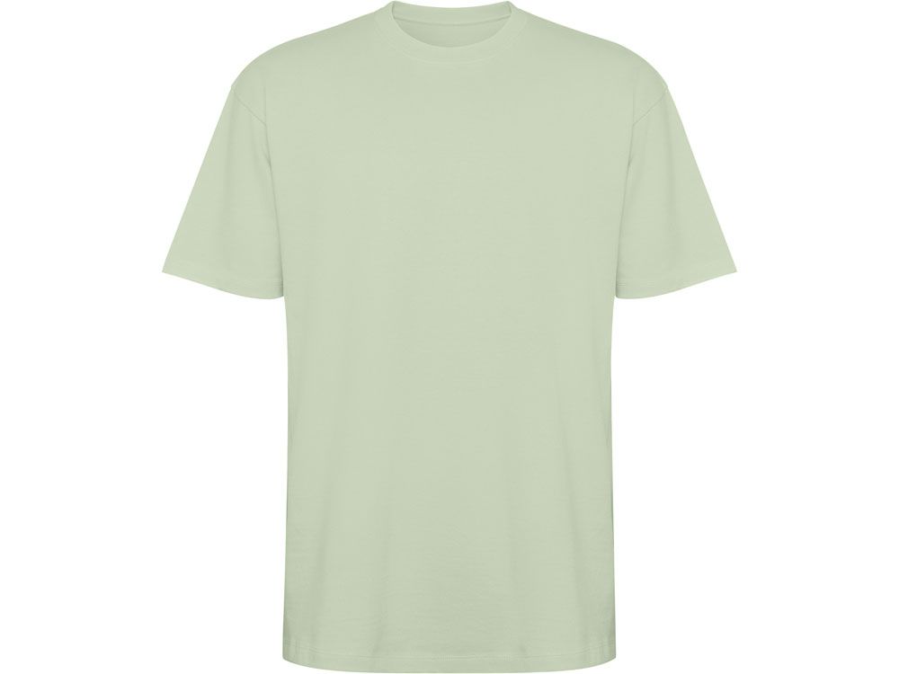 Оверсайз футболка с коротким рукавом. Круглый вырез горловины обработан рибом 2х1. Боковые швы. Широкая двойная отстрочка по рукавам и низу.