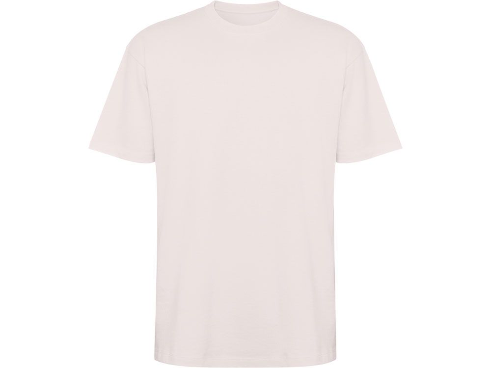 Оверсайз футболка с коротким рукавом. Круглый вырез горловины обработан рибом 2х1. Боковые швы. Широкая двойная отстрочка по рукавам и низу.