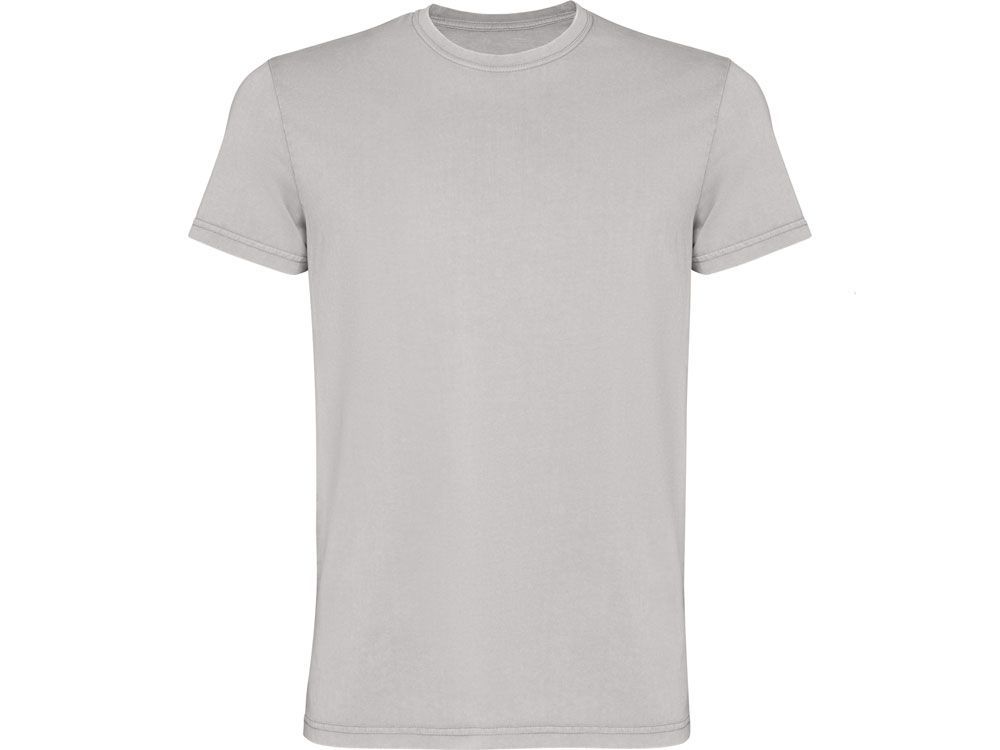 Мужская футболка с коротким рукавом из 100% хлопка с аксидной стиркой. Круглый вырез горловины из риба 1х1. Отстрочка в тон по горловине.