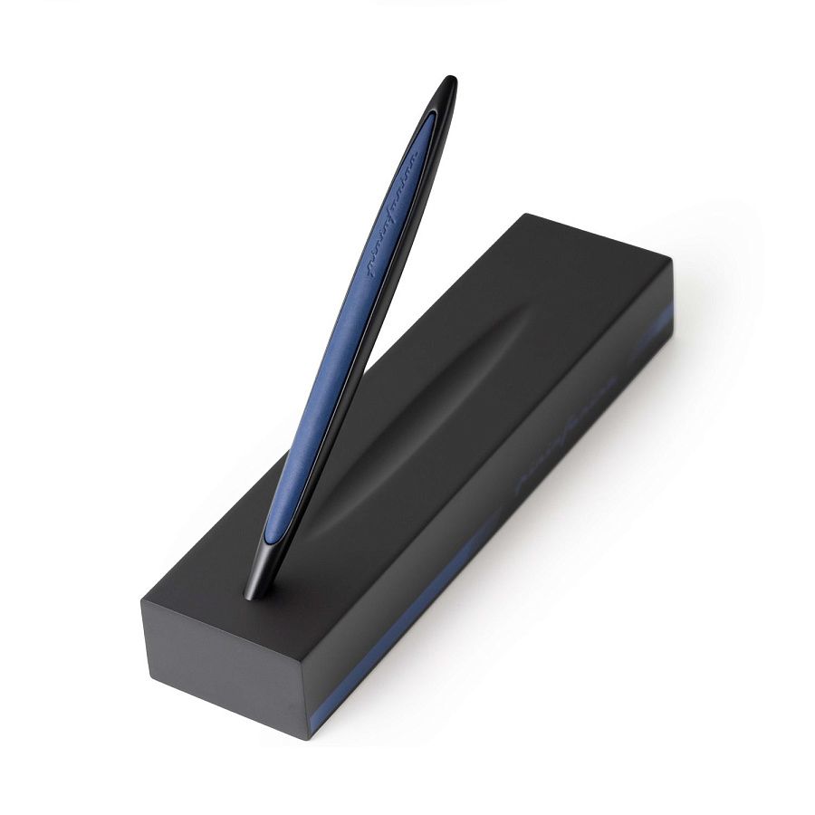 Флагманская ручка модели Cambiano Race Blue дизайнерского дома Pininfarina сочетает в себе различные материалы, технологичность, элегантные линии и смелые дизайнерские решения. Она предназначена для тех, кто любит спортивный дизайн и стремится к уникальному опыту письма. Алюминиевый корпус ручки окрашен в черный цвет, а синие эргономичные резиновые вставки мгновенно вызывают ассоциации с миром автоспорта и служат для оптимального захвата. Изысканная подставка из черного дерева, служащая одновременно коробкой для ручки, вручную покрыта черным лаком и позволяет превратить этот набор в уникальный арт-объект на вашем столе. Этот набор полностью изготовлен вручную, идеально воплощает итальянское мастерство, дух гонок и является символом высшего качества и эксклюзивности. Вечная ручка имеет необычный пишущий узел в виде наконечника Ethergraf, который изготовлен из сплава металлов по запатентованной технологии. Он не содержит свинец и алюминий, производится вручную итальянскими мастерами и практически не расходуется за десятилетия использования. При соприкосновении с поверхностью бумаги, происходит химическая реакция и наконечник оставляет серебристый след, который напоминает цвет графитового карандаша, но обладает большей стойкостью. Вес ручки 39 гр, длина 16 см.