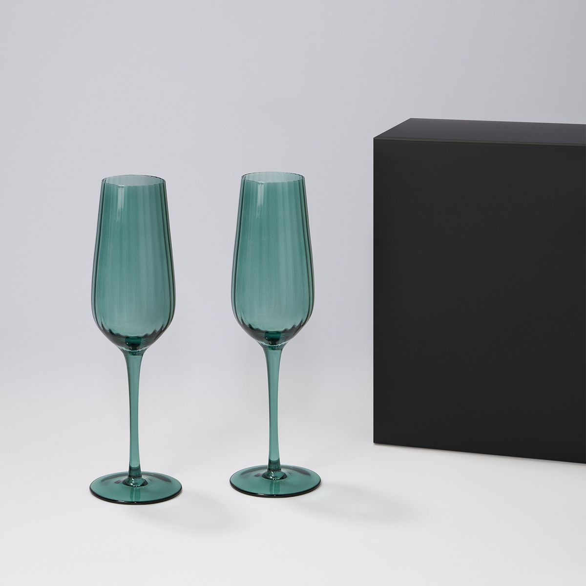 Подарочный набор 2 бокала для шампанского Эмеральд (Emerald) в черной коробке