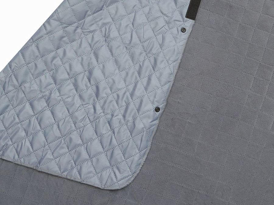 Плед 2-в-1 можно использовать как непромокаемое покрывало на землю и как согревающую и непромокаемую накидку во время пикника на природе. С одной стороны пледа водоотталкивающее покрытие, с другой - мягкий флис.
