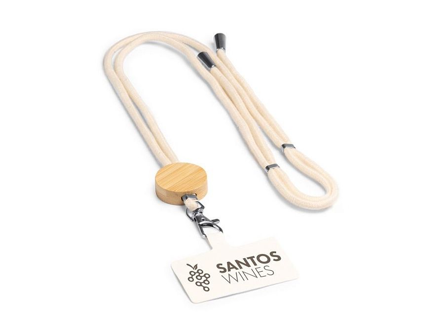Шнурок-держатель для мобильного телефона из хлопка с бамбуковыми вставками и системой регулировки.