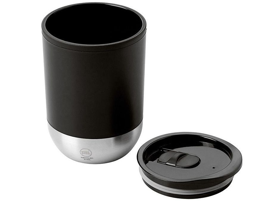 Термокружка с двойными стенками из переработанного полипропилена и дном из нержавеющей стали 304. В комплекте крышка-слайдер. Объём: 290 мл. Поставляется в экологичной коробке.