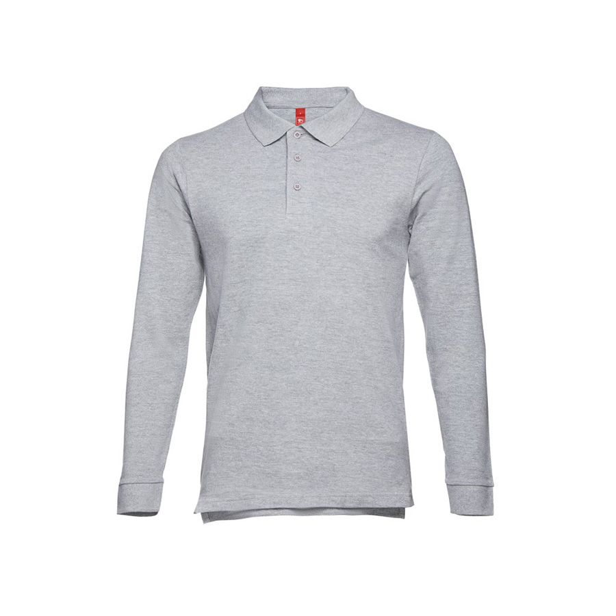 Мужская рубашка-поло с длинным рукавом из хлопковой ткани-пике. Полотно футболки упругое и гладкое благодаря обработке ферментами "enzyme wash" и сохраняет форму при стирке. Модель полуприлегающего силуэта. Благодаря манжете из риба 1х1 рукав смотрится очень аккуратно. Воротник также выполнен из риба 1х1, внутри ворота - укрепляющая тесьма по горловине. Планка с 3 пуговицами в цвет основной ткани изделия. Запасная пуговица на ярлыке во внутреннем боковом шве.