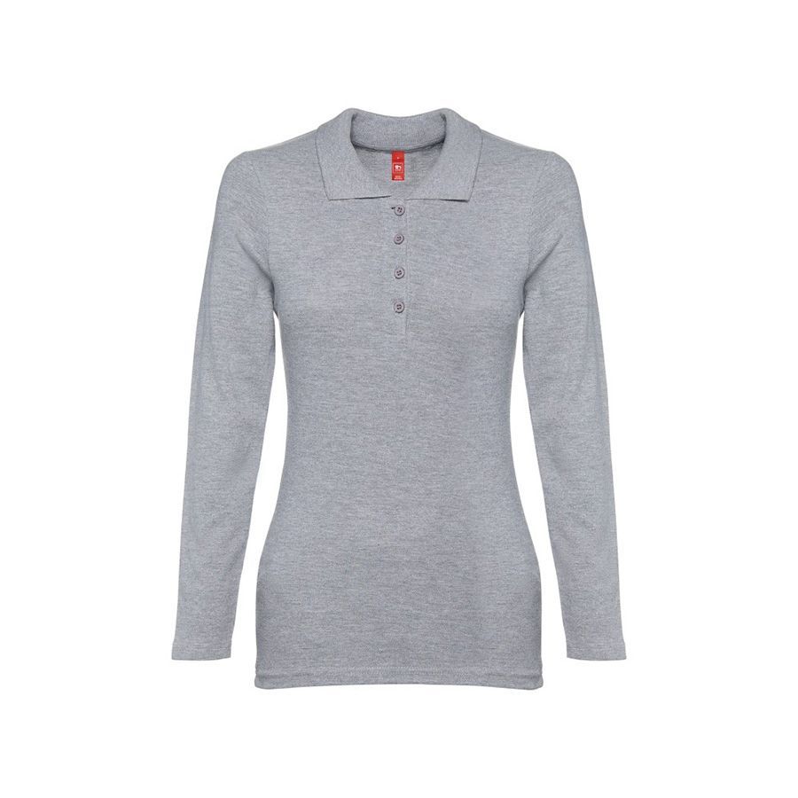Женская рубашка-поло с длинным рукавом из хлопковой ткани-пике. Полотно футболки упругое и гладкое благодаря обработке ферментами "enzyme wash" и сохраняет форму при стирке. Модель приталенного силуэта. Благодаря манжете из риба 1х1 рукав смотрится очень аккуратно. Воротник также выполнен из риба 1х1, внутри ворота - укрепляющая тесьма по горловине. Планка с 3 пуговицами в цвет основной ткани изделия. Запасная пуговица на ярлыке во внутреннем боковом шве.