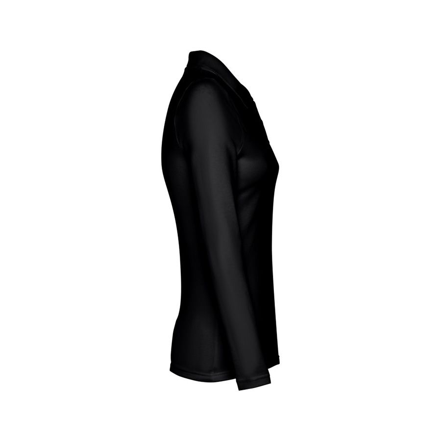 Женская рубашка-поло с длинным рукавом из хлопковой ткани-пике. Полотно футболки упругое и гладкое благодаря обработке ферментами "enzyme wash" и сохраняет форму при стирке. Модель приталенного силуэта. Благодаря манжете из риба 1х1 рукав смотрится очень аккуратно. Воротник также выполнен из риба 1х1, внутри ворота - укрепляющая тесьма по горловине. Планка с 3 пуговицами в цвет основной ткани изделия. Запасная пуговица на ярлыке во внутреннем боковом шве.