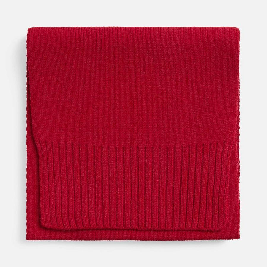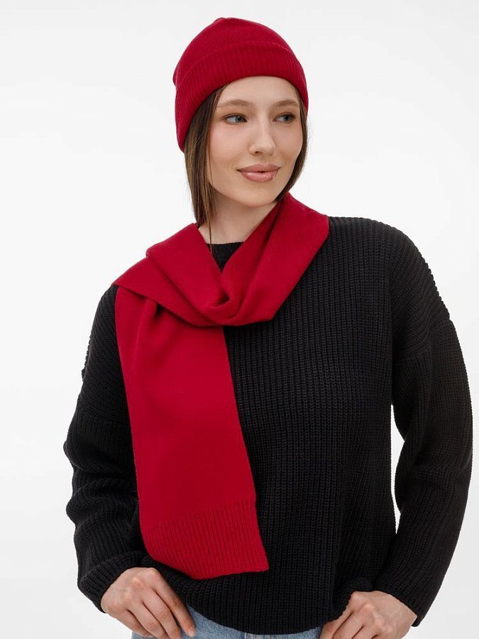 Классический однослойный шарф гладкой вязки. Края, связанные резинкой, придают изделию завершенный и аккуратный вид.
