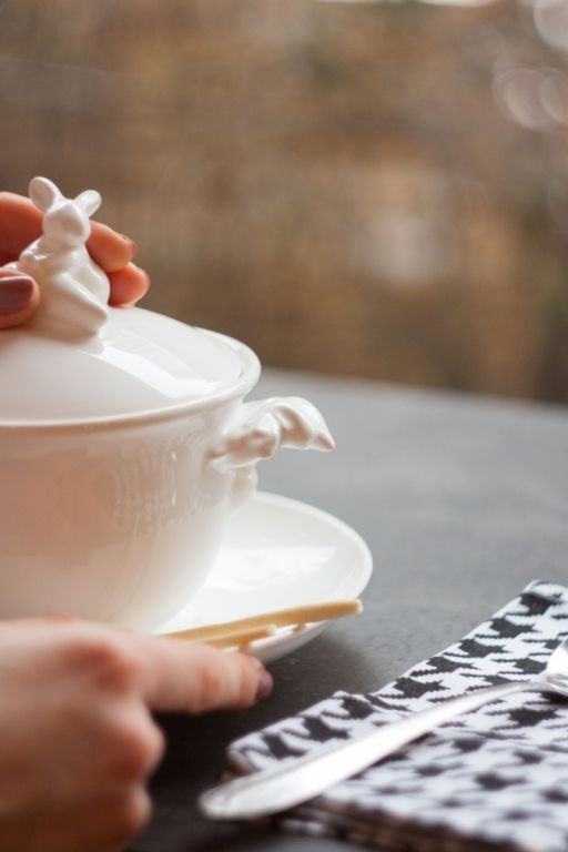 Чашечка горячего ароматного супа со специями - лучшая возможность сохранить хорошее самочувствие в период холодов. Кролик бережно укроет ваш обед крышечкой, и он не остынет, дожидаясь, пока вы закончите работу или ответите на телефонный звонок. Bon appetit! Объем : 425 мл Диаметр блюдца: 18 см В комплекте бульонница с блюдцем Материал - фарфор Производитель: CLAYSTREET, Ростов на Дону