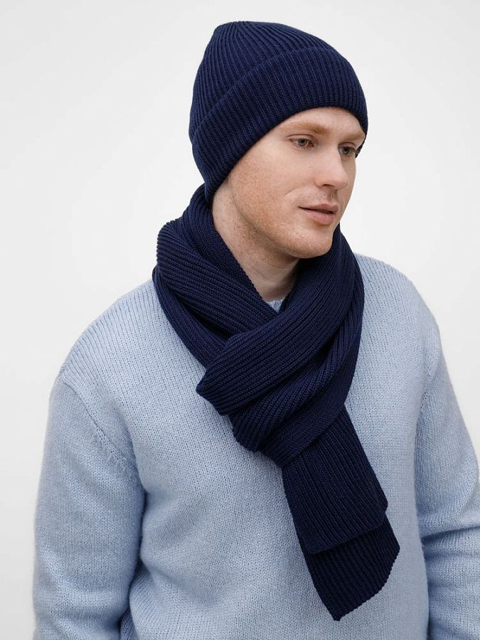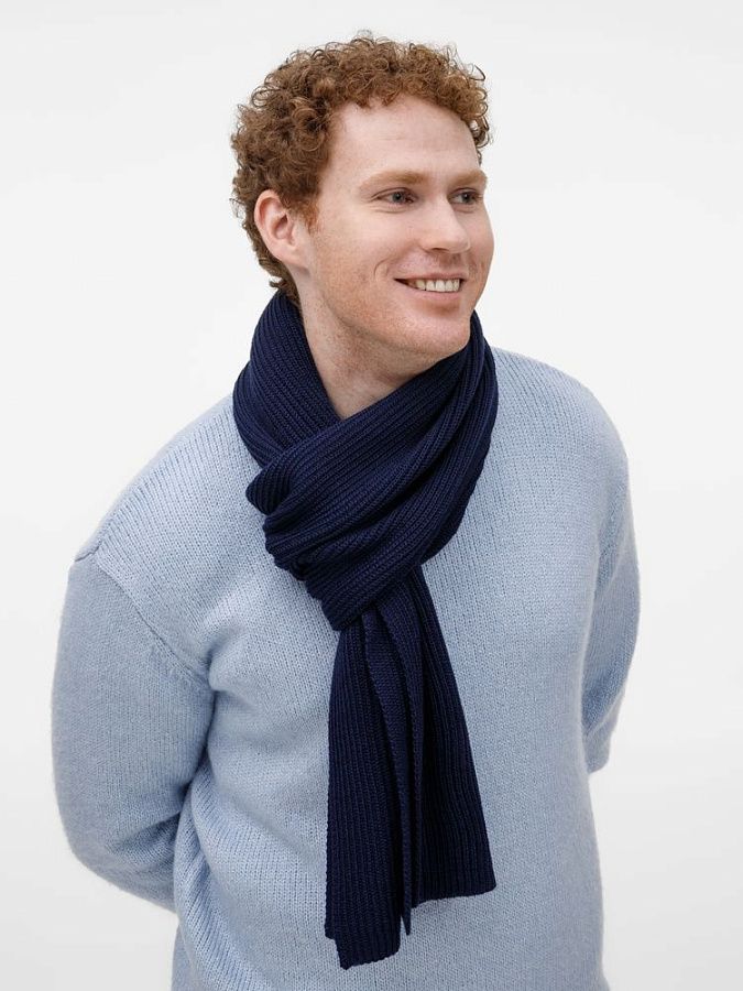 Широкий шарф из мягкой полушерстяной пряжи с выразительной фактурной вязкой создает современный запоминающийся образ.