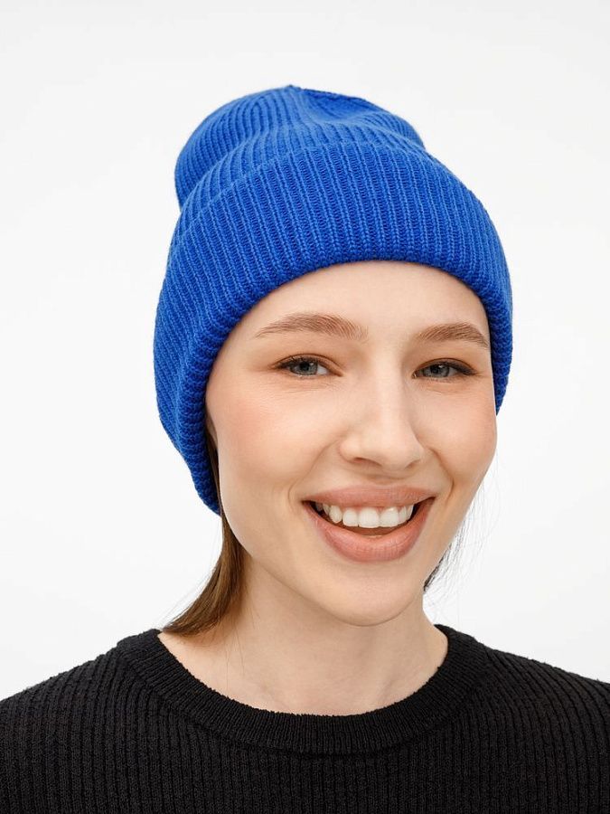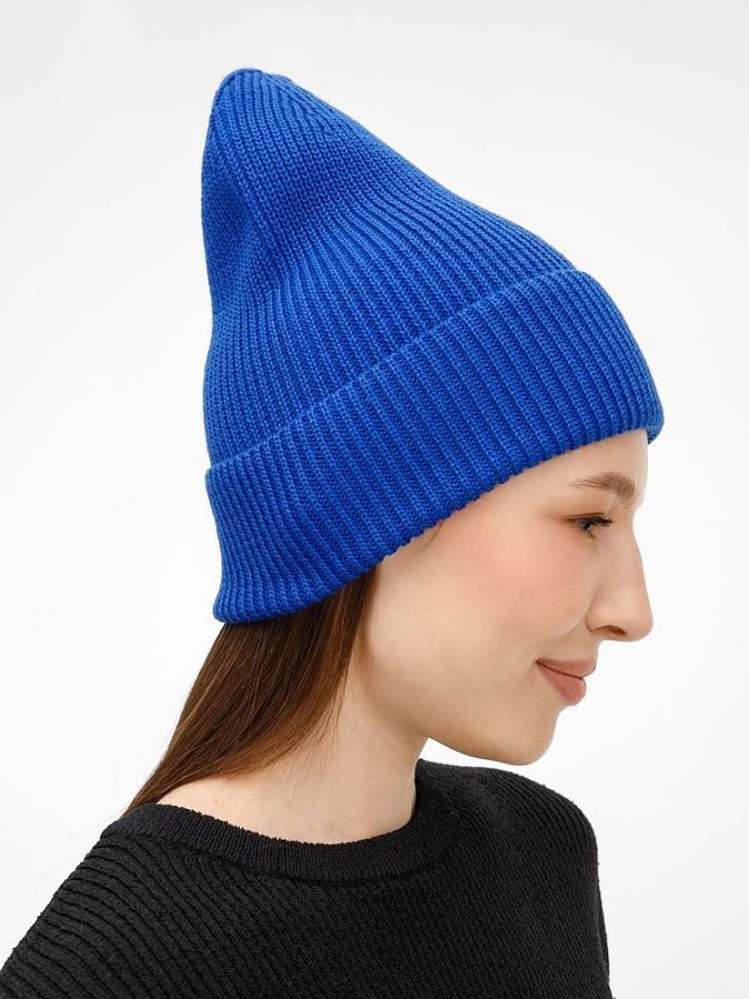 Удлиненный силуэт шапки Nobilis Mono из мягкой полушерстяной пряжи с широким отворотом создает стильный современный образ, а фактурная вязка добавляет объем и выразительность.