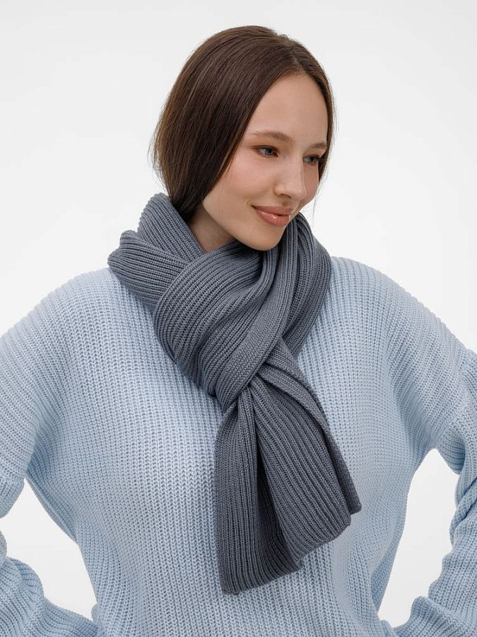 Широкий шарф из мягкой полушерстяной пряжи с выразительной фактурной вязкой создает современный запоминающийся образ.