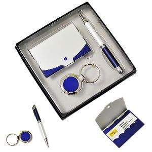 Набор: авторучка, брелок и визитницацвет: синий с белымразмер: 16 х 16 смматериал: металл