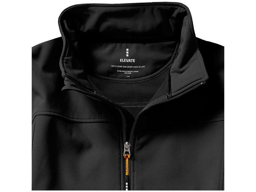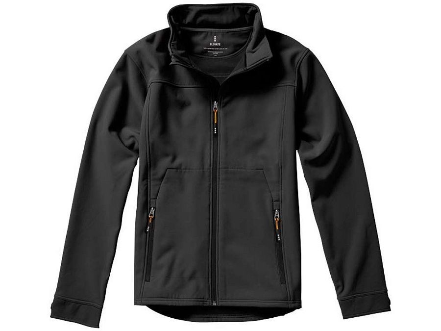 Куртка софтшел Langley. Стандартный покрой. Отстегивающийся капюшон на шнурках со стопперами. Обратная молния по центру и на карманах для рук. Регулируемые манжеты на липучках. Отражающий лого сзади. Водонепроницаемый 5000 мм. Дышащий 3000 мм. Ткань эластична в четырех направлениях. Ветронепроницаемая. Ремешки на собачку (второй комплект в цвете антрацит). Ткань из 90% полиэстера и 10% эластана, склеенного со 100% полиэстеровым микрофлисом. 300 г/м².