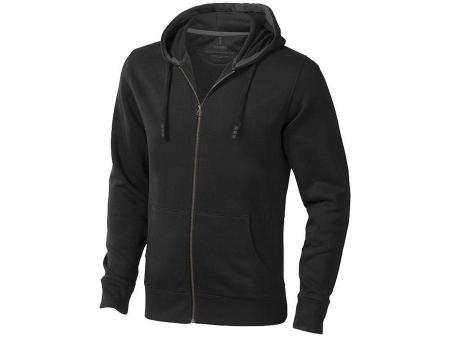 Свитер Arora с капюшоном и застежкой-молнией на всю длину. Стандартный покрой. Резинка 2х2 на боковых вставках, поясе и манжетах. Карман кенгуру. Мужская и женская модели с завязками на капюшоне. Подкладка внутри капюшона. Подкладка на полумесяце. Атласная лента внутри горловины. Принт лого сзади в тон изделия. Серебристые люверсы с лого. Трикотаж: 80% хлопок и 20% полиэстер, чесаная внутренняя сторона. 300 г/м².