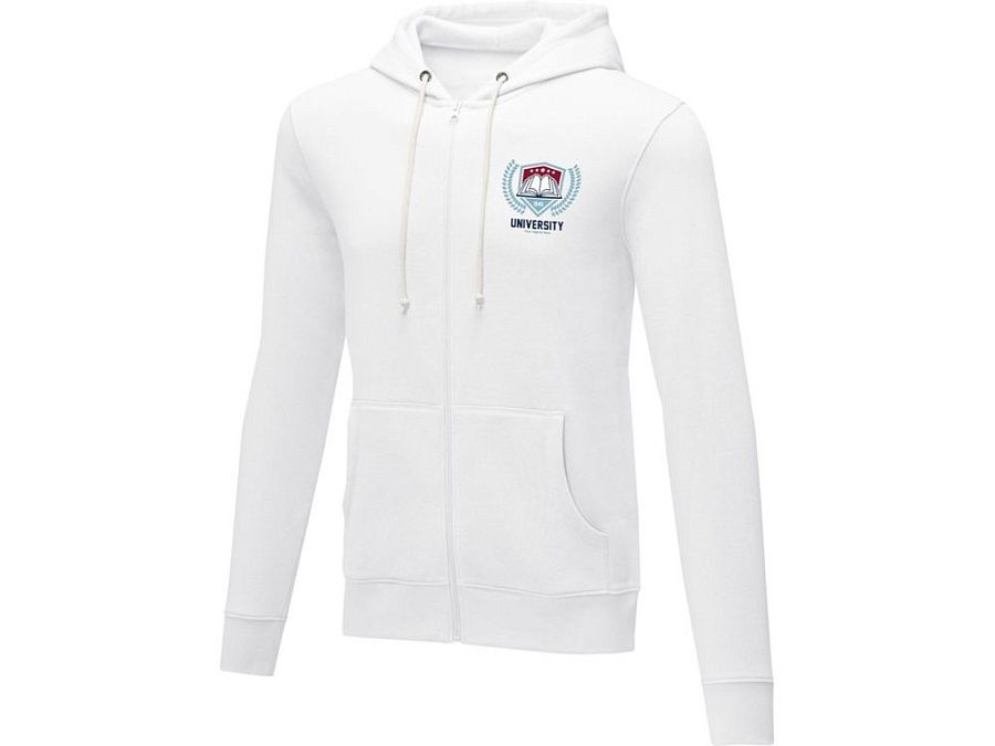 Мужская толстовка на молнии Theron. Основная этикетка, которую можно оторвать или отрезать, без неудобных пришитых ярлыков. Завязки на капюшоне. Расположенная по центру молния. Карман «кенгуру». С подшивкой из гладкого трикотажа в рубчик. С манжетами из гладкого трикотажа в рубчик. Внутренняя сторона покрыта ворсом. Тесьма из основного материала по внутренней стороне горловины. Трикотаж 50% Хлопок, 50% Полиэстер, 240 g/m2.
