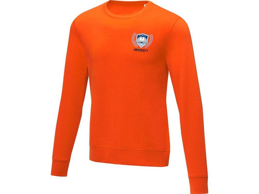 Мужской свитер Zenon с круглым вырезом. Основная этикетка, которую можно оторвать или отрезать, без неудобных пришитых ярлыков. Круглый вырез. Воротник из гладкого трикотажа. С манжетами из гладкого трикотажа в рубчик. С подшивкой из гладкого трикотажа в рубчик. Внутренняя сторона покрыта ворсом. Самоклеящаяся лента на воротнике. Трикотаж 50% Хлопок, 50% Полиэстер, 240 g/m2.