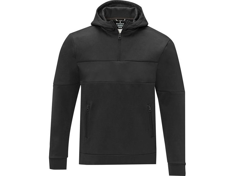 Молния на четверть длины. Модель анорак. Передние карманы с застежкой-молнией. Петля для подвешивания с фирменной символикой. Бегунки застежки-молнии с простой фиксацией. Главный лейбл нанесен методом термоприклеивания, удобным для размещения рисунков на ткани.