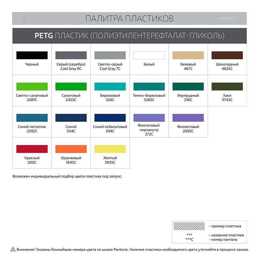 - Цвет и тип пластика. Варианты цветов можно посмотреть в разделе «Фотографии».