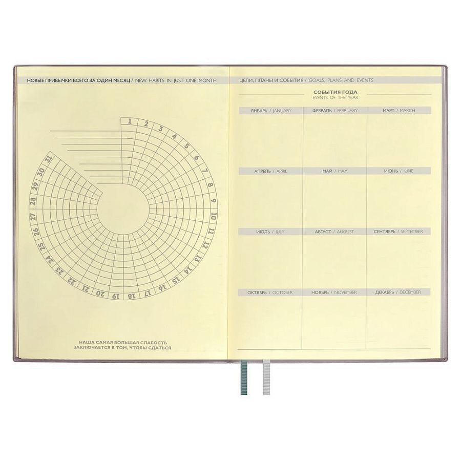 На обложке встречается оттиск от закладки, который разгладится в процессе эксплуатации ежедневника.