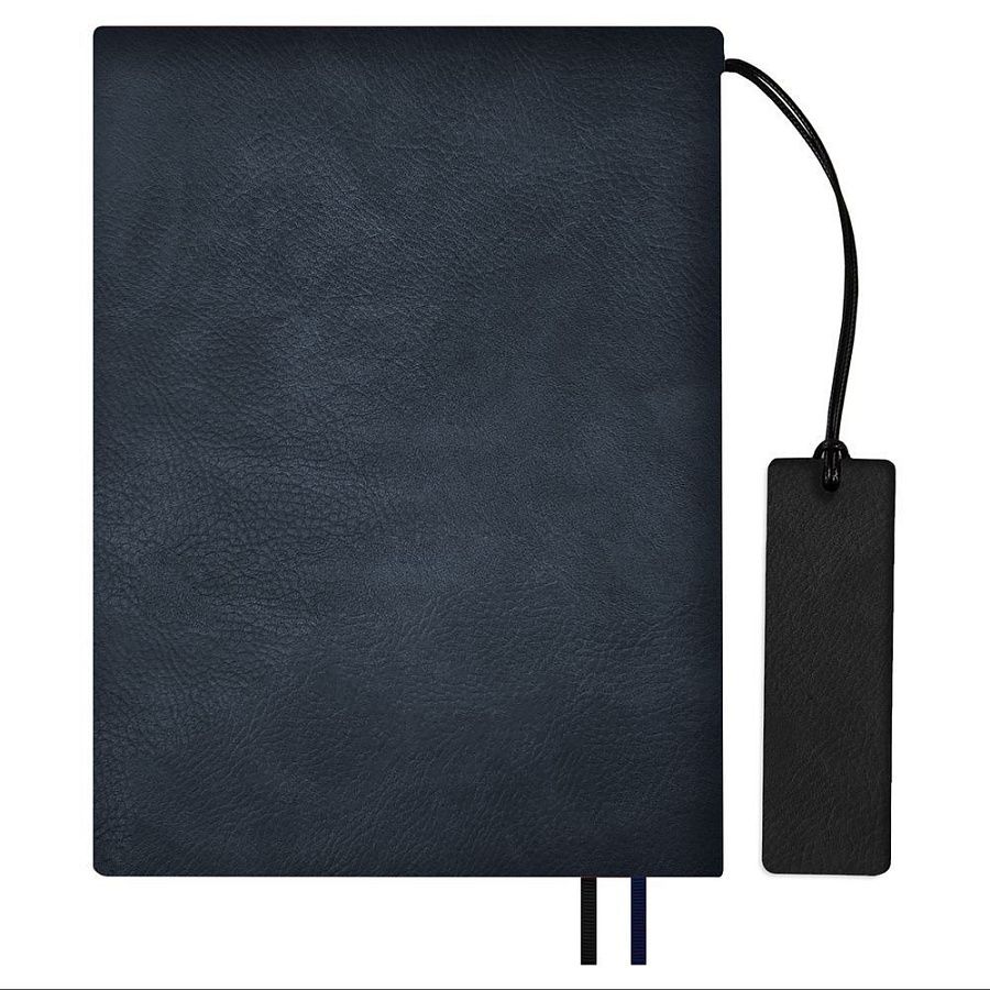Ежедневник с гибкой обложкой и закладкой из искусственной кожи, дополнен капталом и двойным ляссе.