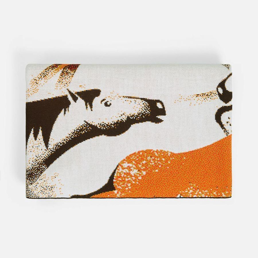 Плед «Огнегривые» масштабно воплощает символ 2026 года — Красную Огненную Лошадь. Табун лошадей, словно охваченных пламенем или заревом, в едином порыве смело несется вперед — навстречу новому, к общей манящей цели, мерно отбивая ритм и наслаждаясь свободой.