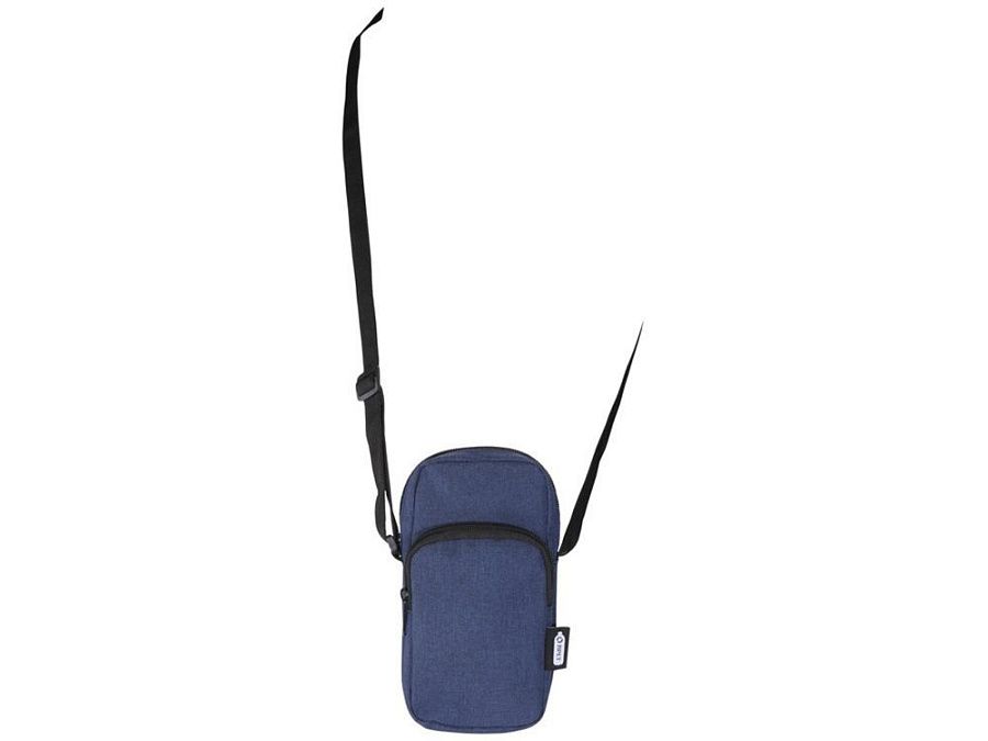 Сумочка для телефона Ross, изготовлена из переработанных материалов, сертифицированных согласно, GRS сохранит ваш телефон в безопасности и всегда заряженным с помощью входящего в комплект портативного зарядного устройства в отделении на молнии. Спереди расположен. карман на молнии для других мелких аксессуаров.Ремень 140 см регулируется по длине, что делает сумочку удобным аксессуаром для гаджетов во время поездок или передвижений по городу. GRS certified recycled polyester.