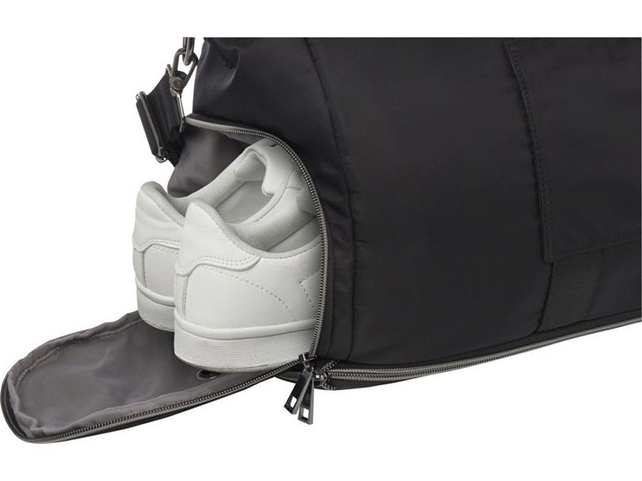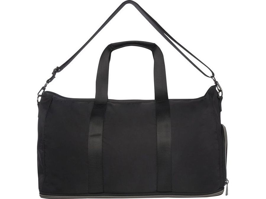 Расширяемая спортивная сумка Rhine легко трансформируется и становится стильной для различных случаев благодаря своему элегантному дизайну и универсальности. Изготовлен из высококачественного переработанного нейлона, сертифицированного согласно GRS, с мягкой подкладкой из переработанного РЕТ-пластика и элементами из высококачественной полиуретановой кожи. В спортивной сумке имеется просторное основное отделение с большим герметичным карманом из термополиуретана, 2 кармана на рукавах, специальное отделение для обуви, надежный потайной карман на задней стороне (также выполняющий функцию ремня для крепления к ручке чемодана) и съемные плечевые ремни, которые можно регулировать для максимального комфорта. Что действительно отличает эту спортивную сумку, так это ее расширяемый слой, объем которого можно увеличить до 42 литров. Емкость: 35-42 литров. Выдерживает вес до 20 кг. Не содержит ПВХ. GRS certified recycled nylon.