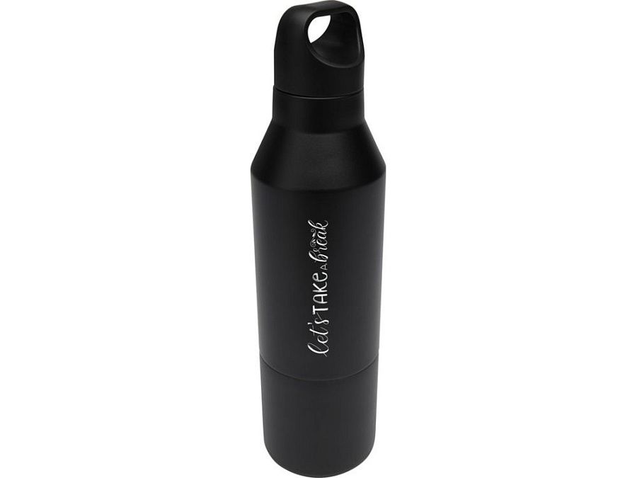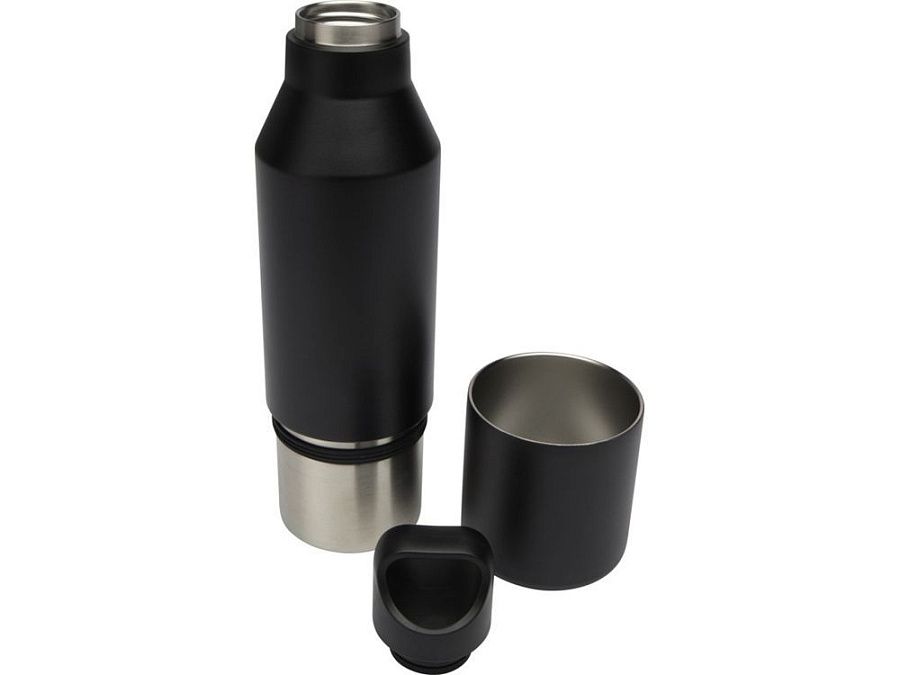 Бутылка из нержавеющей стали с двойными стенками и медной изоляцией, сертифицированная согласно RCS, со съемной крышкой. Эта многофункциональная бутылка помещается в боковой карман рюкзака и имеет удобную ручку для переноски, встроенную в крышку. Прочное порошковое покрытие снаружи. Напитки останутся горячими в течение 12 часов и холодными в течение 24 часов. Поставляется в подарочной коробке из переработанного картона. Объем бутылки: 600 мл. Объем кружки: 300 мл. Recycled stainless steel. упаковка FSC Mix Credit P5.1 CU-COC-877277.