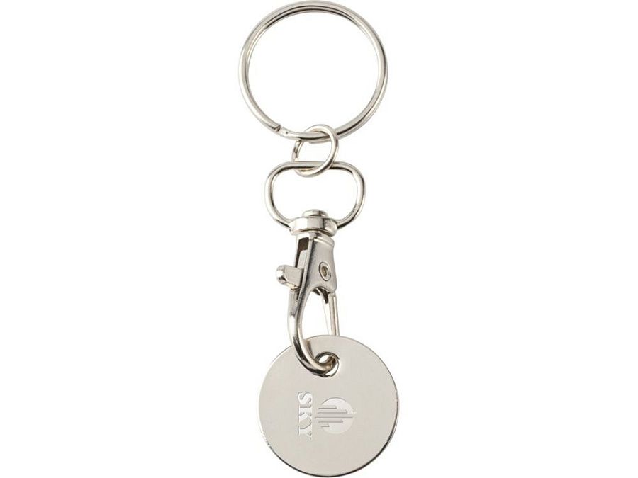 Брелок Rory с цветной монетой для тележки подходит для большинства тележек супермаркетов, позволяя открывать их без монет или жетонов. Цинковый сплав.